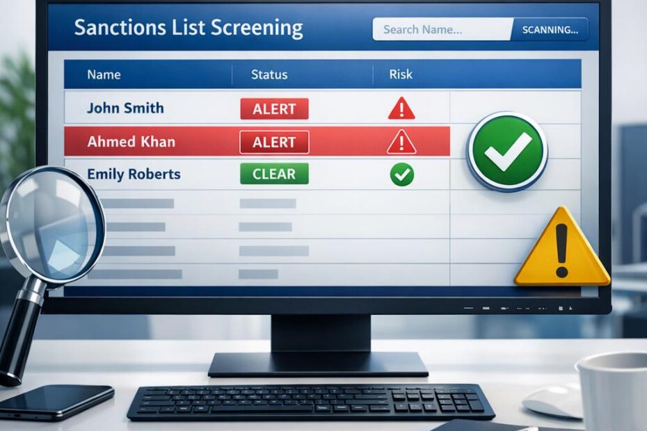 - Es handelt sich um eine softwaregestützte Überprüfung von Kunden, Geschäftspartnern oder Transaktionen gegen offizielle Sanktionslisten zur Risikoerkennung.